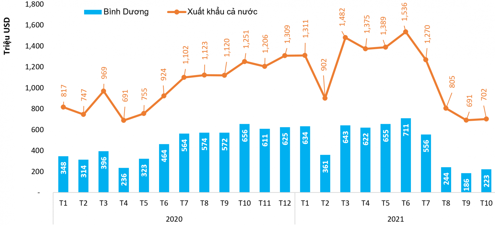 Bình Dương đã bước sang giai đoạn “Thích ứng an toàn, linh hoạt, kiểm soát hiệu quả dịch COVID-19”. Hiện hầu hết các doanh nghiệp trên địa bàn tỉnh đã khôi phục sản xuất và ngành gỗ cũng dần trên đà phục hồi, giá trị xuất khẩu của ngành gỗ Bình Dương trong tháng 10 năm 2021 đã đạt 223,15 triệu USD tăng 20% so với tháng trước đó.