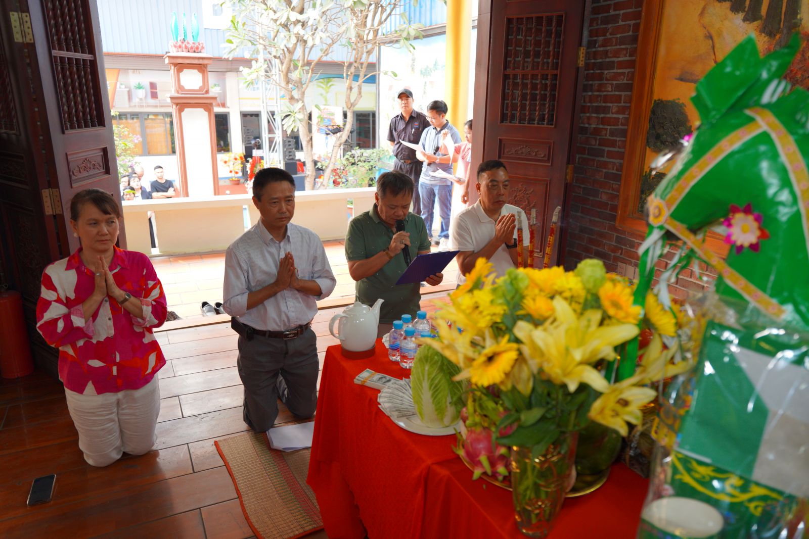 Ban lãnh đạo công ty đọc văn khấn mở đầu lễ giỗ tổ.